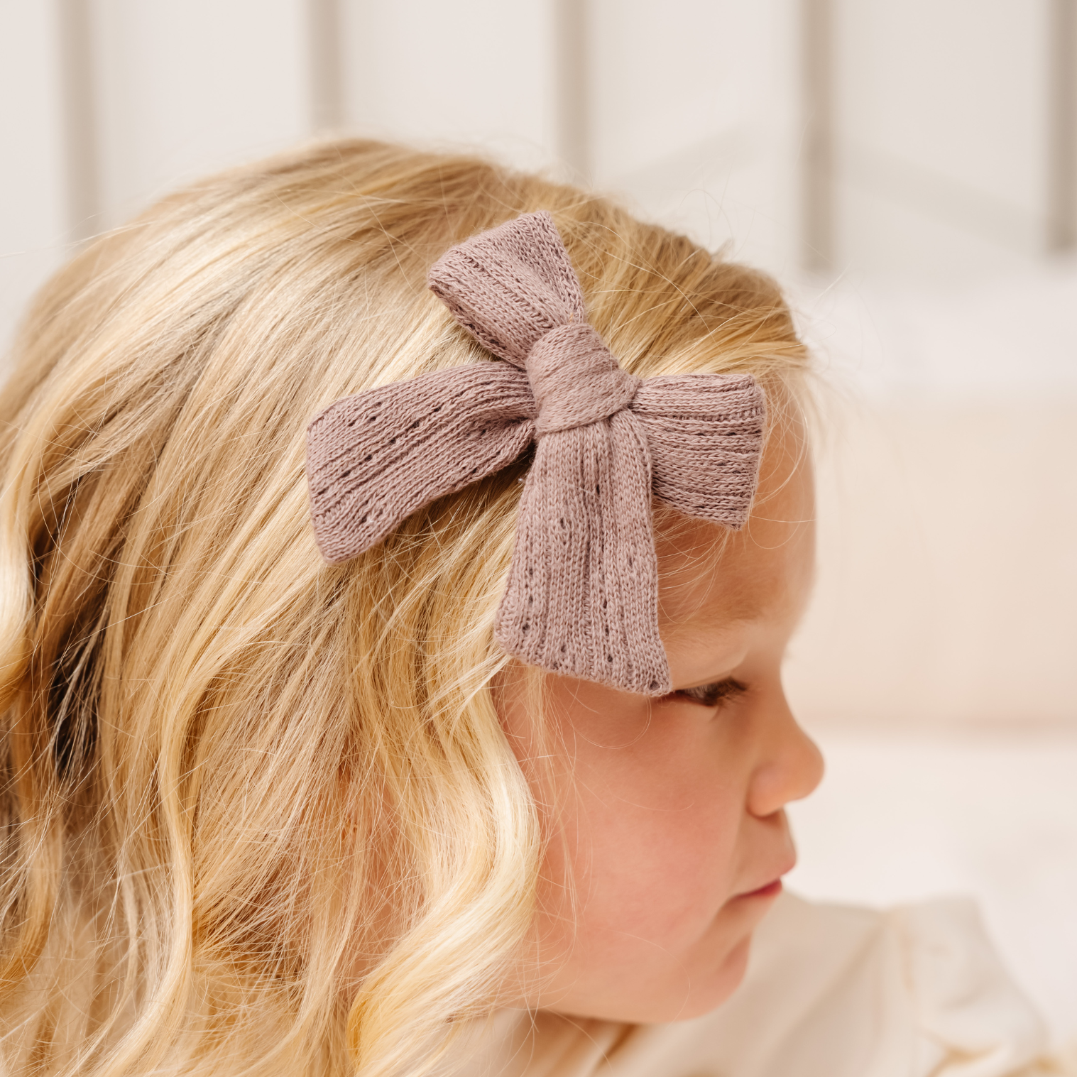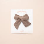 Brown Pointelle Knit Bow Clip